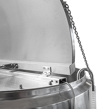 Neue Scharniere und Kette zur individuellen Festlegung, wie weit der Deckel des Fermenters zur Beschickung geöffnet werden soll